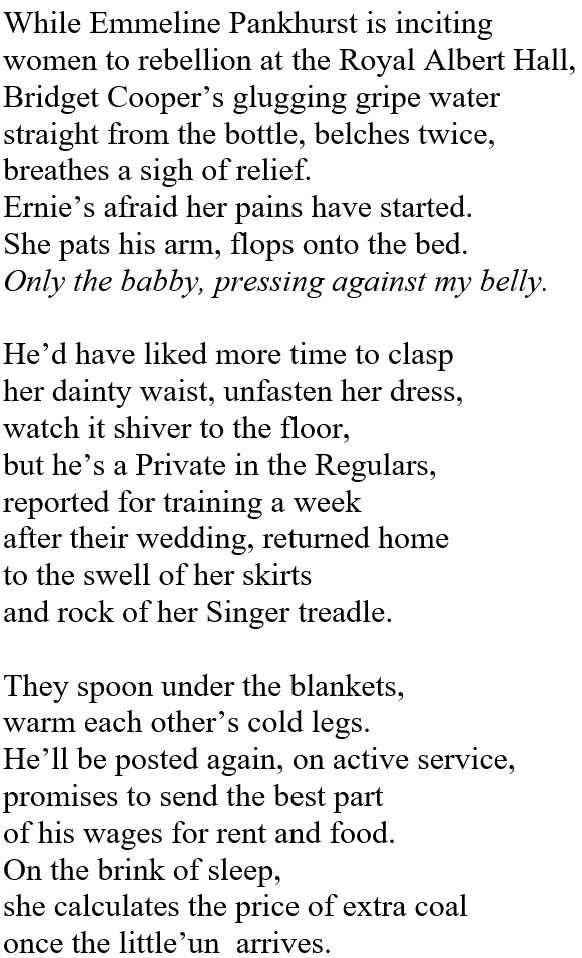 Sheila Jacob lives in N. E. Wales with her husband. Born and raised in Birmingham, she finds her Brummie ancestry a source of inspiration. She’s working on her first collection.