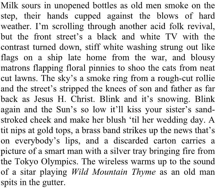 Leicestershire-based Tim Relf has had poems in The Spectator, Acumen, The Rialto and The Frogmore Papers. He is an alumnus of Faber’s Advanced Poetry Academy. His most recent novel, published by Penguin, has been translated into more than 20 languages. Find him on Twitter at @timrelf