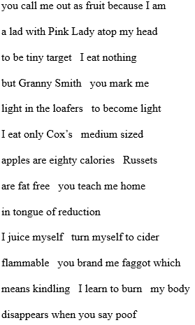 James McDermott’s Green Apple Red is a dazzling pamphlet which maps the speaker’s growth from shamed ‘unnatural’ adolescent into queer adult proud of their nature. These majestic poems look towards a queerness of nature encouraging the inosculation of the reader and McDermott’s written word.