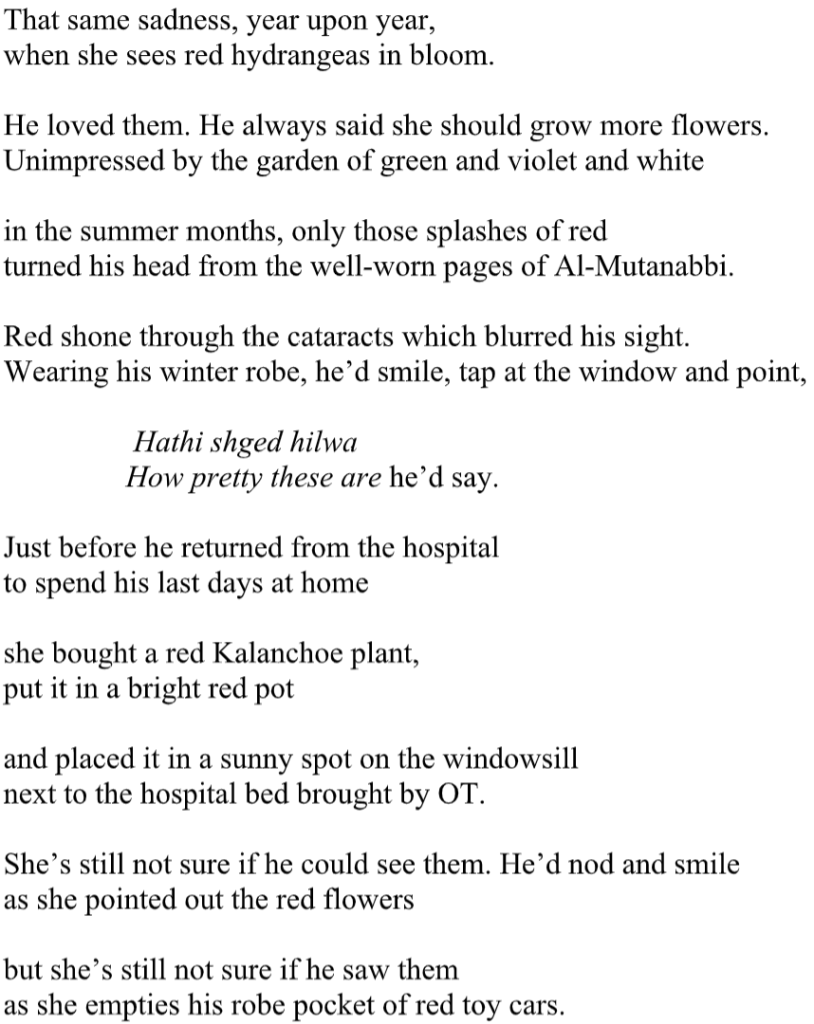Abeer Ameer’s poems have appeared widely in publications including: Acumen, Poetry Wales, Planet and The Rialto. She is a member of poetry performance group, The Spoke. Her debut poetry collection, Inhale/ Exile, in which she shares stories of her Iraqi heritage, was published by Seren in February 2021.