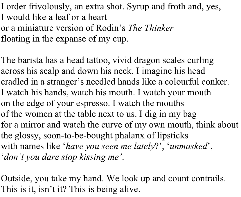 Hannah Linden most recent awards include 1st prize in the Cafe Writers Poetry Competition 2021 and Highly Commended, Wales Poetry Award 2021. Her debut pamphlet, TheBeautiful Open Sky, is published by V. Press (2022) Twitter: @hannahl1n