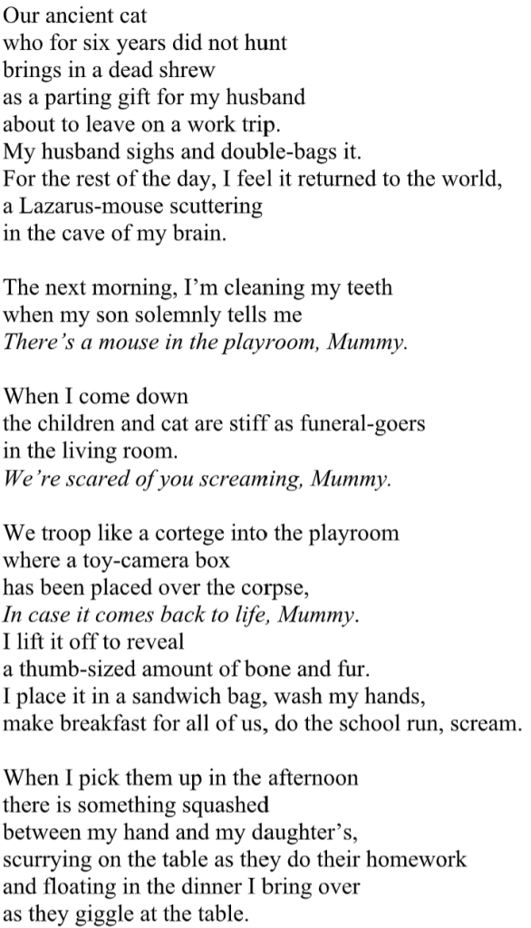 Maria Taylor is a British Cypriot poet and reviewer, who has been highly commended by the Forward Prizes. Her latest collection is Dressing for the Afterlife (Nine Arches Press). Her debut, Melanchrini, was shortlisted for the Michael Murphy Memorial Prize. She tweets at @MariaTaylor_
