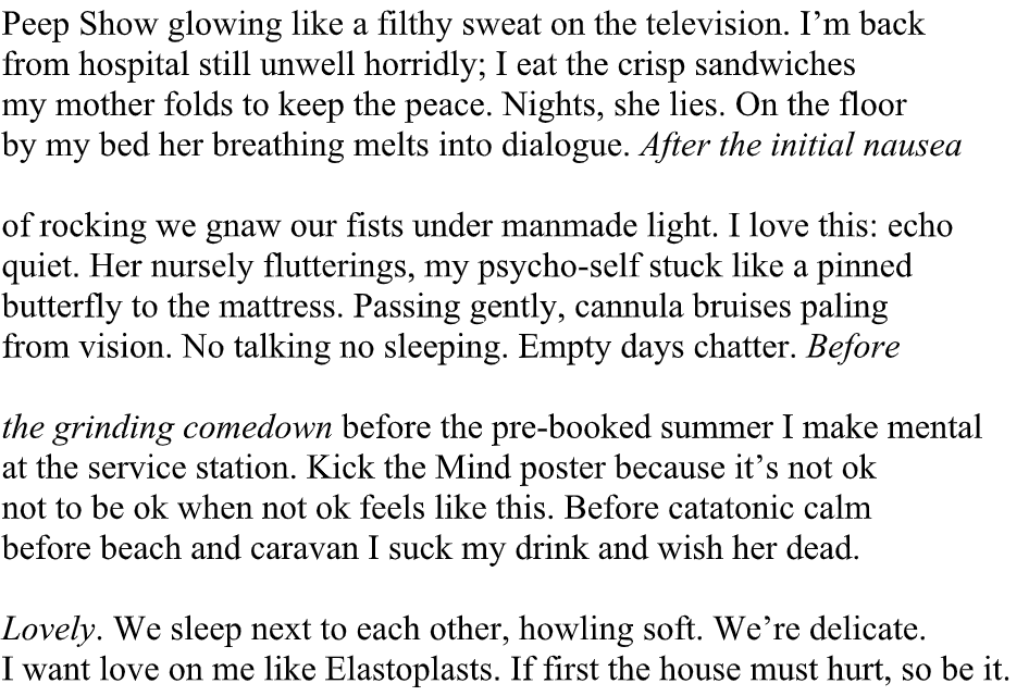 D. Parker is currently studying for an MA in Creative Writing. Her debut pamphlet ‘Rush’, was published by Bullshit Lit Mag + Press in February. She is the editor of Needle Poetry.