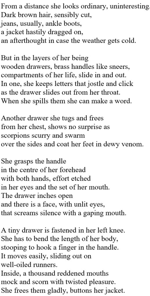 Ruth Stacey’s first poetry collection Queen, Jewel, Mistress was published by Eyewear Publishing, 2015, and her second full collection, I, Ursula, was published in January 2020 by V. Press Poetry. Pamphlets include, Inheritance, published by Mothers Milk Books in 2017. A duet with Katy Wareham Morris, the collection explores 19th century experience of motherhood, contrasted with a 21st century mother’s voice. Inheritance won Best Collaborative Work at the 2018 Saboteur Awards. Three pamphlets with Knives, Forks and Spoons Press. A poetic memoir, How to Wear Grunge, was published in 2018. Viola the Virgin Queen, illustrated by Desdemona McCannon, was published in 2020, and her latest work, The Dark Room: Letters to Krista, a collaboration with the American photographer Krista Kay, was published in 2021. Stacey is currently writing an imagined memoir of the tarot artist Pamela Colman Smith, as part of her PhD study.