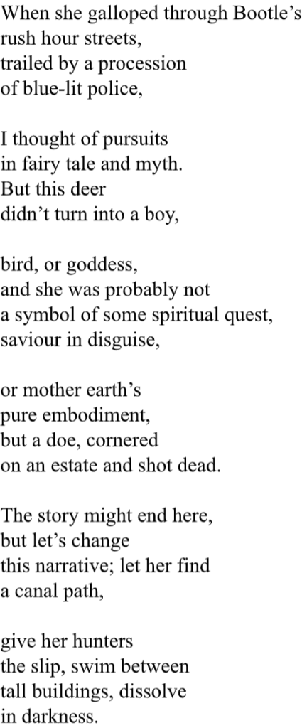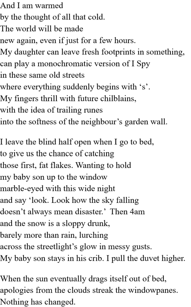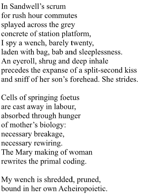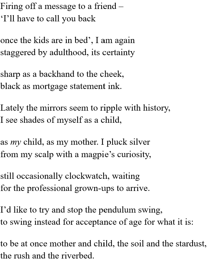 ‘Playful, moving, tender and true; this pamphlet is a magical yet honest reflection on the wonder of motherhood. Nature, art and folklore run through these poems so deftly they continue to sing long after they’re put down. A joy.‘ Maria Ferguson