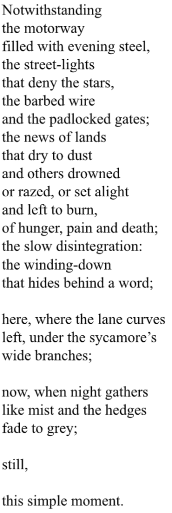 Ian Glass lives in Worcestershire where he works as a computer programmer. His poems have appeared in online and print publications, including Acumen, Atrium, Ink Sweat & Tears, Prole and Rialto. His pamphlet ‘About Leaving’ was published by V-Press in 2019.