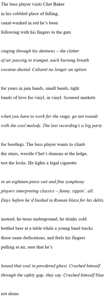 Pizzicato – George Sandifer-Smith January 20, 2026 ~ Claire Walker Pizzicato . . George Sandifer-Smith is a Welsh poet. He has published two collections, Nights Travel at the Right Speed (Infinity Books UK) and Empty Trains (Broken Sleep Books). Share this:TweetLike Loading... Related