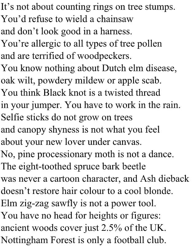 The Tree Surgeon Tries To Put Me Off – Lisa Kelly February 20, 2026 ~ Claire Walker The Tree Surgeon Tries To Put Me Off . . Lisa Kelly’s second collection, The House of the Interpreter (Carcanet), was a PBS Summer 2023 Recommendation. She was shortlisted for the 2024 Forward Prizes for Poetry for Best Single Poem – Written. Share this:TweetLike Loading... Related